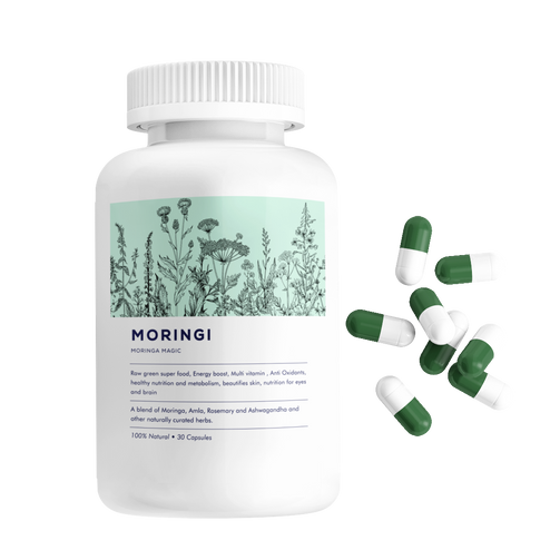 Moringi is simply the Moringa Magic which is Raw and Green Super Food. Moringi contains Multi Vitamin, Antioxidants which helps in Healthy Nutrition, Metabolism and Energy Boost. Its regular use leads to Beautifies skin and provides Nutrition for Eyes and Brain. Moringi is a blend of Moringa, Amla, Rosmary, Ashwagandha and other naturally curated herbs.